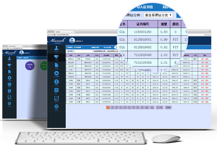 生动的3D视觉效果,专业的产品结构配比;针对珠宝行业完美定制;共享海量裸钻成品库存数据